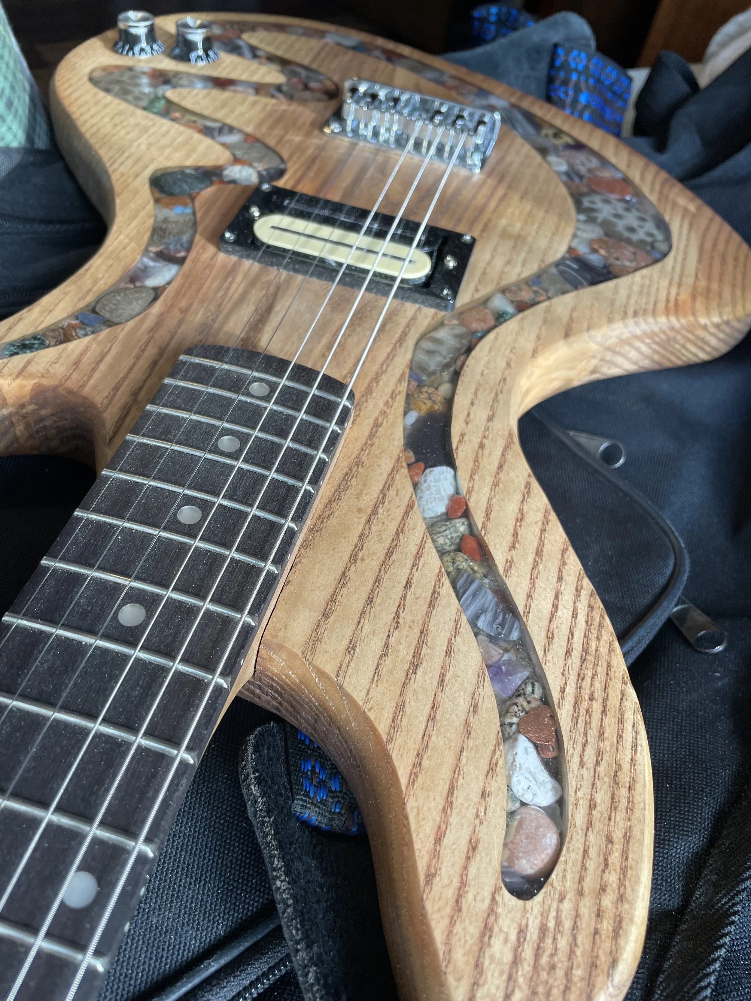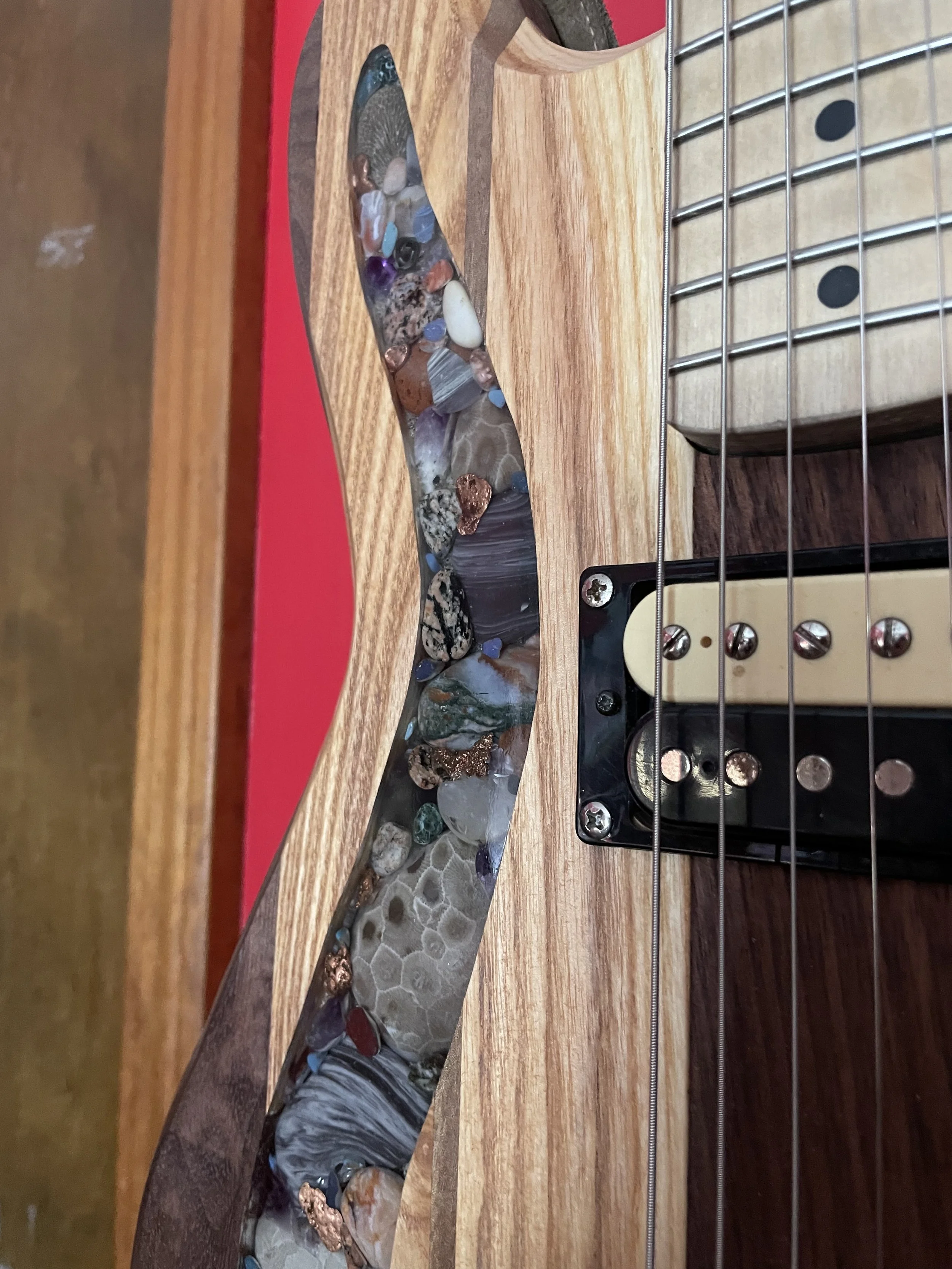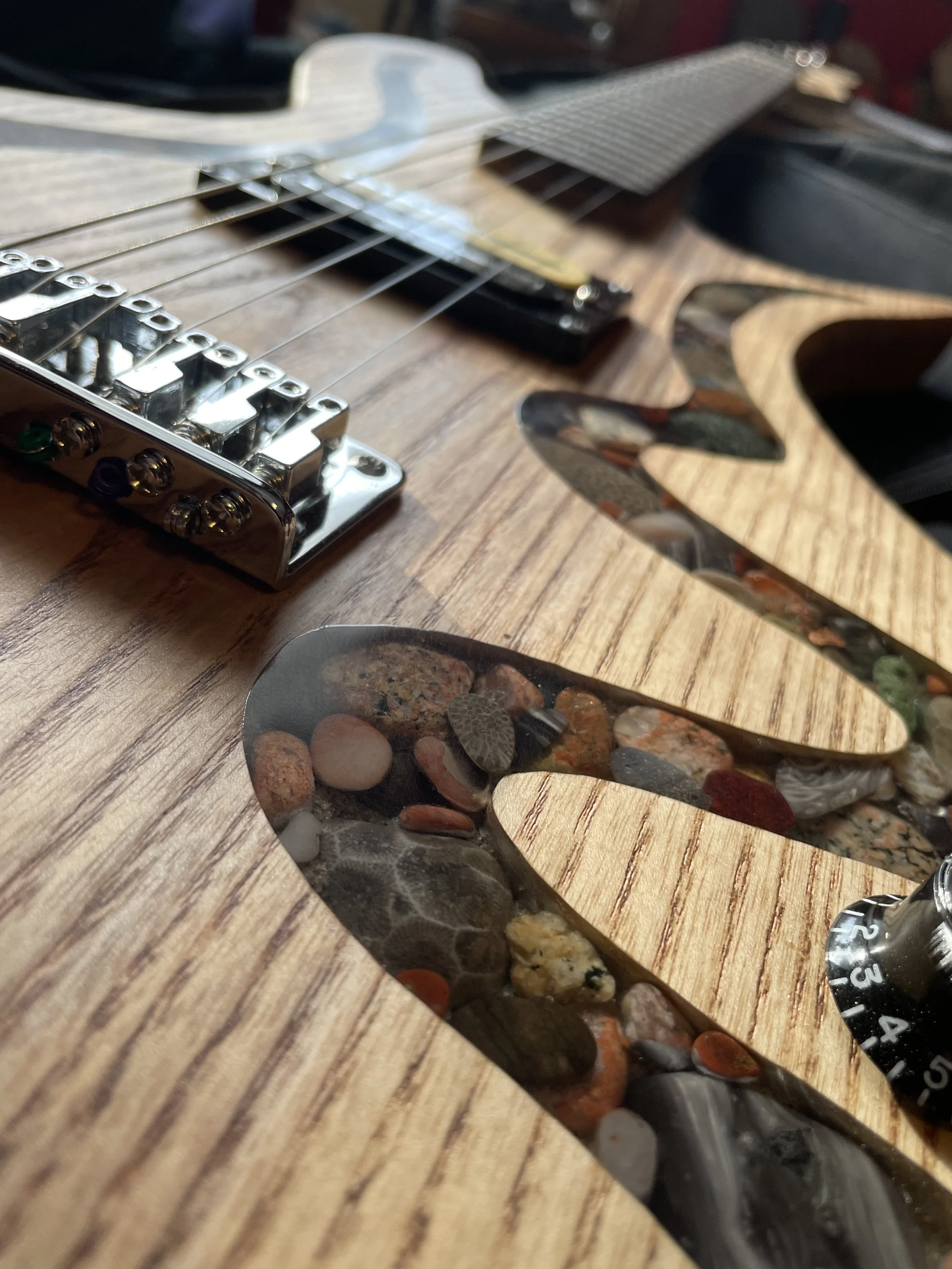 Each piece is one of a kind, with stone from the Great Lakes and locally sourced hardwoods. Colored inlays are also available. For more information, check out PPCG, or contact Hunter or Bob directly. We’ll be happy to work with you to make the guitar of your dreams.