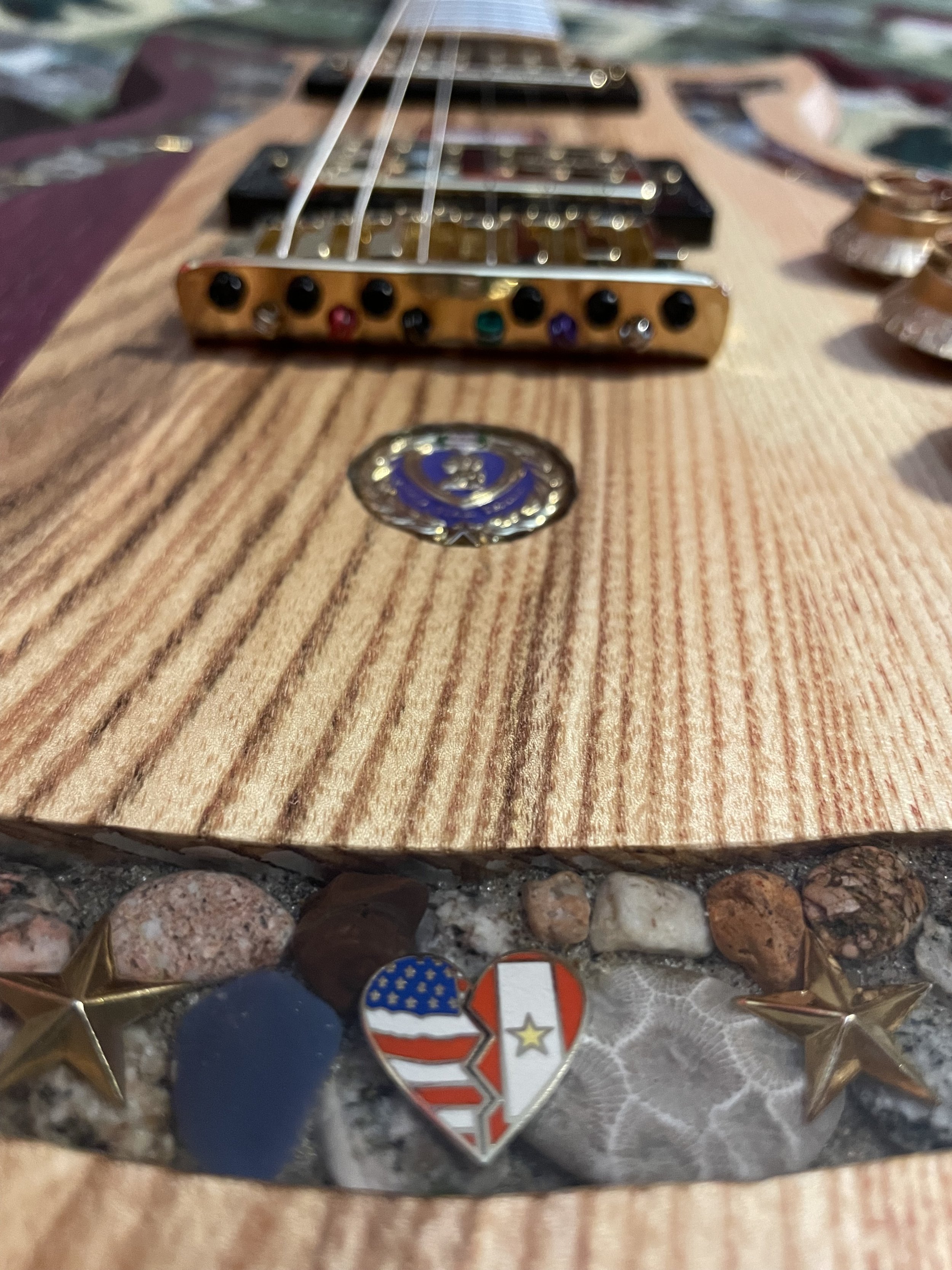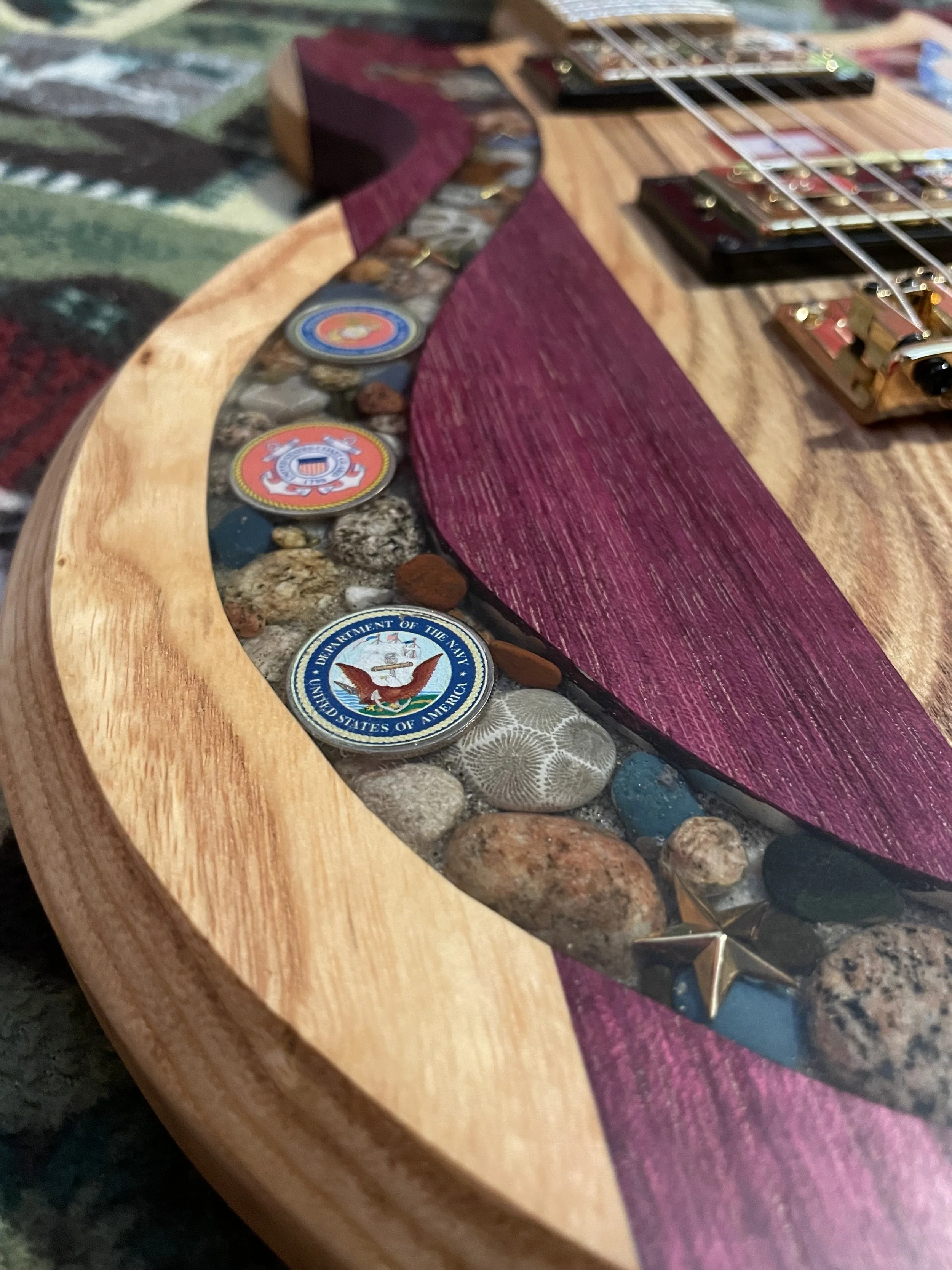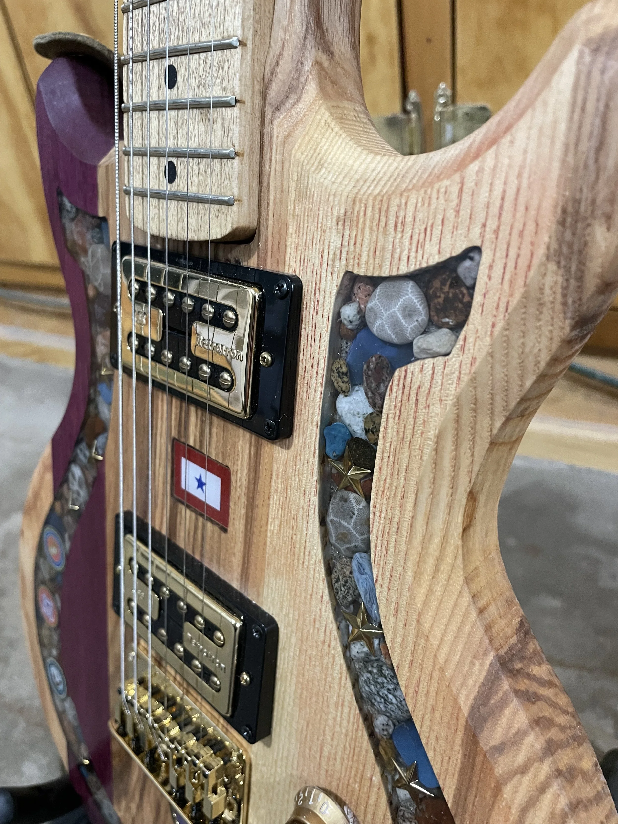 Each piece is one of a kind, with stone from the Great Lakes and locally sourced hardwoods. Colored inlays are also available. For more information, check out PPCG, or contact Hunter or Bob directly. We’ll be happy to work with you to make the guitar of your dreams.